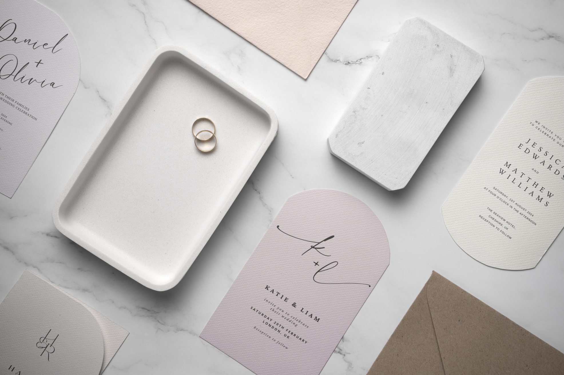 Whether you're planning a quiet, intimate ceremony or a grand celebration, our wedding invitations, save the dates, and on-the-day stationery are thoughtfully made to suit your theme.