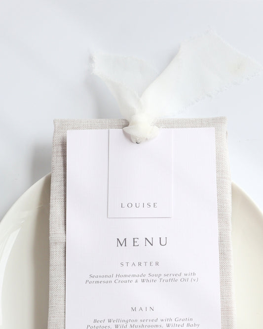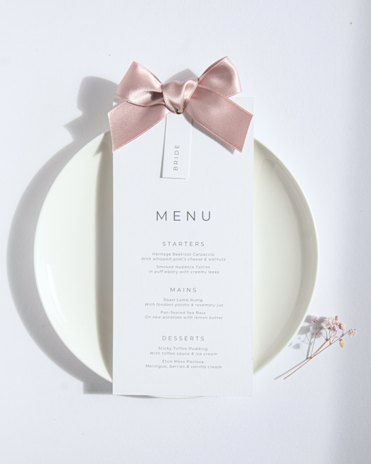 Eleanor Wedding Menu | Wedding Menu with Chiffon Ribbon