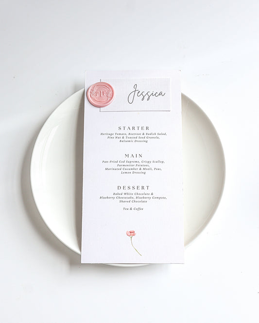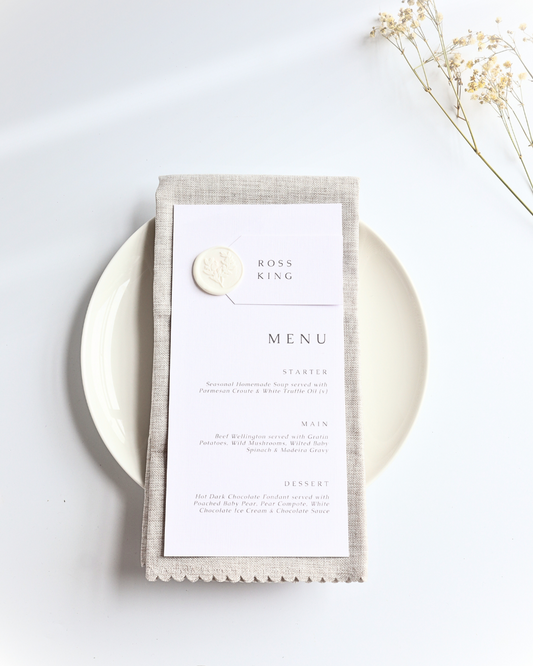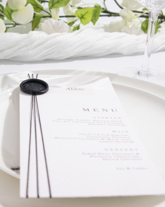 Eleanor Gold Wax Seal Wedding Menu & Place Setting
