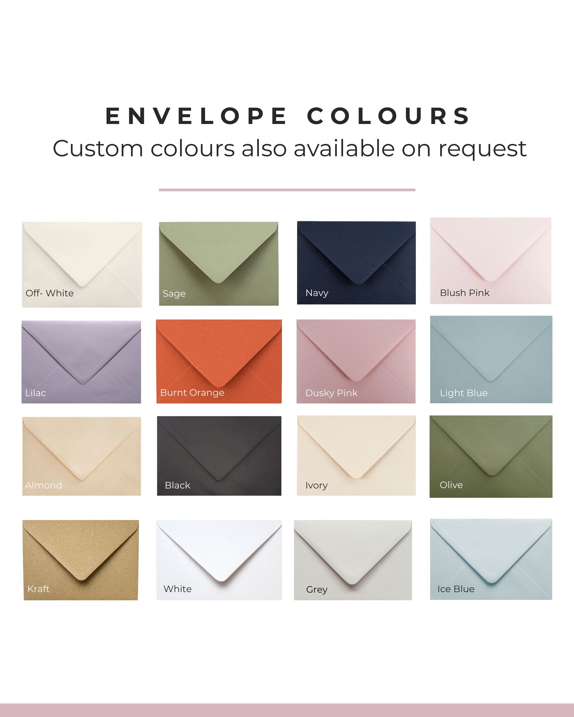 From colours and fonts to bespoke designs, customise every detail of your stationery. Whether you have a specific vision in mind or need a little guidance, we're here to help. Get in touch today to bring your vision to life!