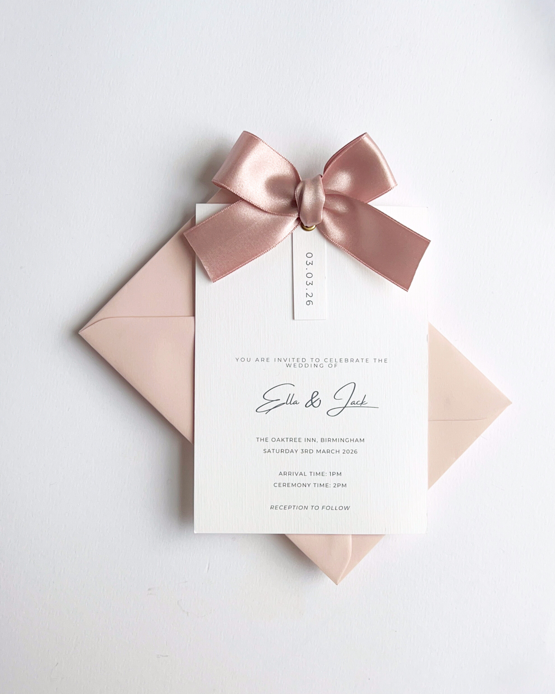 Each set is printed on premium card-stock and fully personalised with your wording. You can also add matching RSVP cards, details cards, and envelopes to complete the suite.